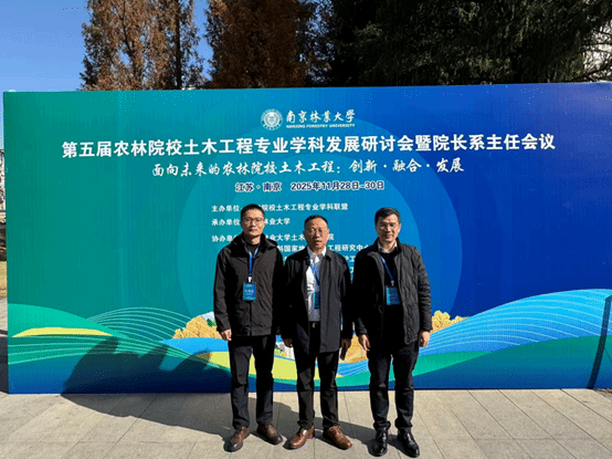 为促进我校土木工程专业及学科的内涵建设,深化与全国农林院校同行交流,2025年11月28日至30日,学院院长王达、副院长孙广臣、专业负责人王皓磊等一行应邀赴南京,参加了由农林院校土木工程专业学科联盟主办、南京林业大学承办的“第五届农林院校土木工程专业学科发展研讨会暨院长系主任会议”。本次会议以“面向未来的农林院校土木工程:创新·融合·发展”为主题,汇聚了全国40余所农林高校的100余位院长、系主任及骨干教师。
