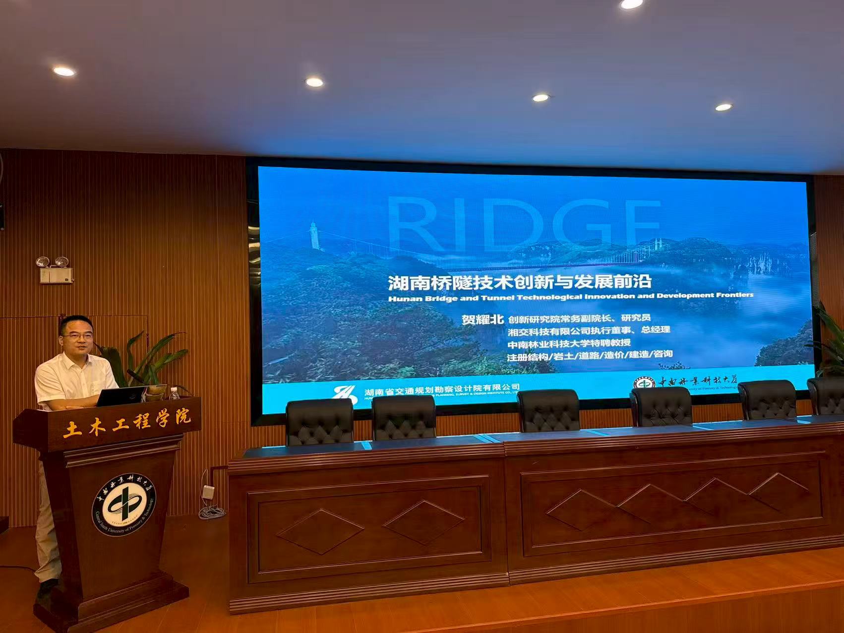 2025年9月19日上午,湖南省交通规划勘察设计院创新研究院常务副院长贺耀北教授、中南林业科技大学张永健教授受邀在土木工程学院501会议室作学术报告。学院领导及土木专业师生共计180余人参加,土木工程系主任秦红禧副教授主持。