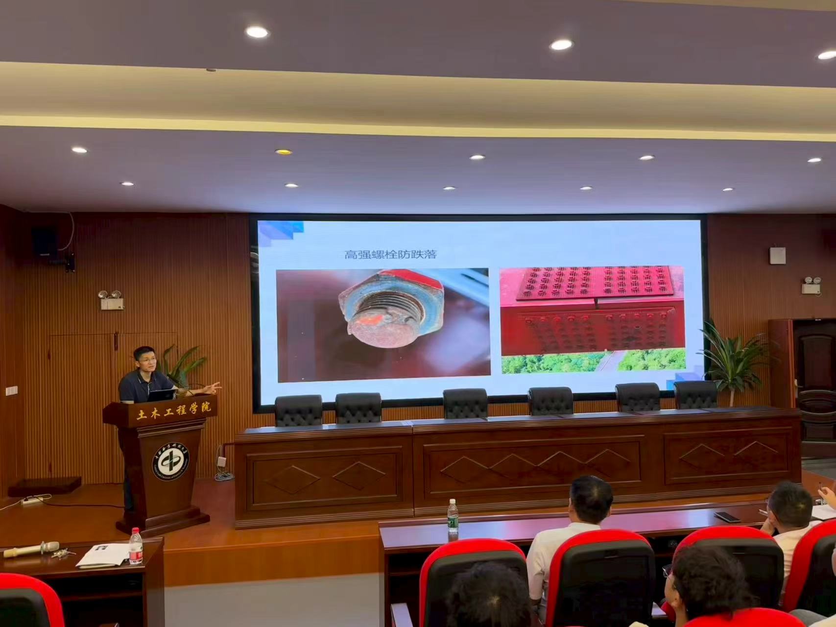 张永健教授随后作题为《桥梁初识与创新》的学术报告。报告面向桥梁工程初学者与跨领域从业者,从基础概念逐层深入,详细介绍了现代桥梁的结构体系类型、受力原理与关键设计方法等,并以其主要负责的矮寨大桥超级工程为背景,详细介绍了该大桥的设计特点、建造难点以及大桥建设过程中的新材料、新工艺等。重点剖析了矮寨大桥的“四个世界第一”,尤其是“轨索滑移法”主梁架设方法。此外,张教授还以“一种防止高强螺栓跌落的方法”微创新、大桥旅游开发、文创产品开发等为例,启发大家在工程建设过程中多维度思考,贴合工程实际需求,开展多种形式的创新。报告旨在搭建知识桥梁,激发师生对于桥梁结构创新的浓厚兴趣,并重点强调了跨学科合作在未来桥梁发展中的关键作用。(一审/周鹰 二审/胡壹 三审/闫昌明)